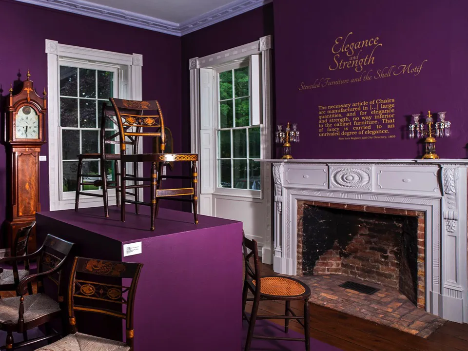 Nineteenth-century fancy furniture made in New York was the embodiment of its name: a creative and imaginative flight of fancy. Fancy side chairs were popular for their decorative painted style, light construction and rushed or caned seats. After 1815, painted stencils on furniture allowed detailed designs to be easily produced with accuracy. Several stencils might be used to achieve a single design.