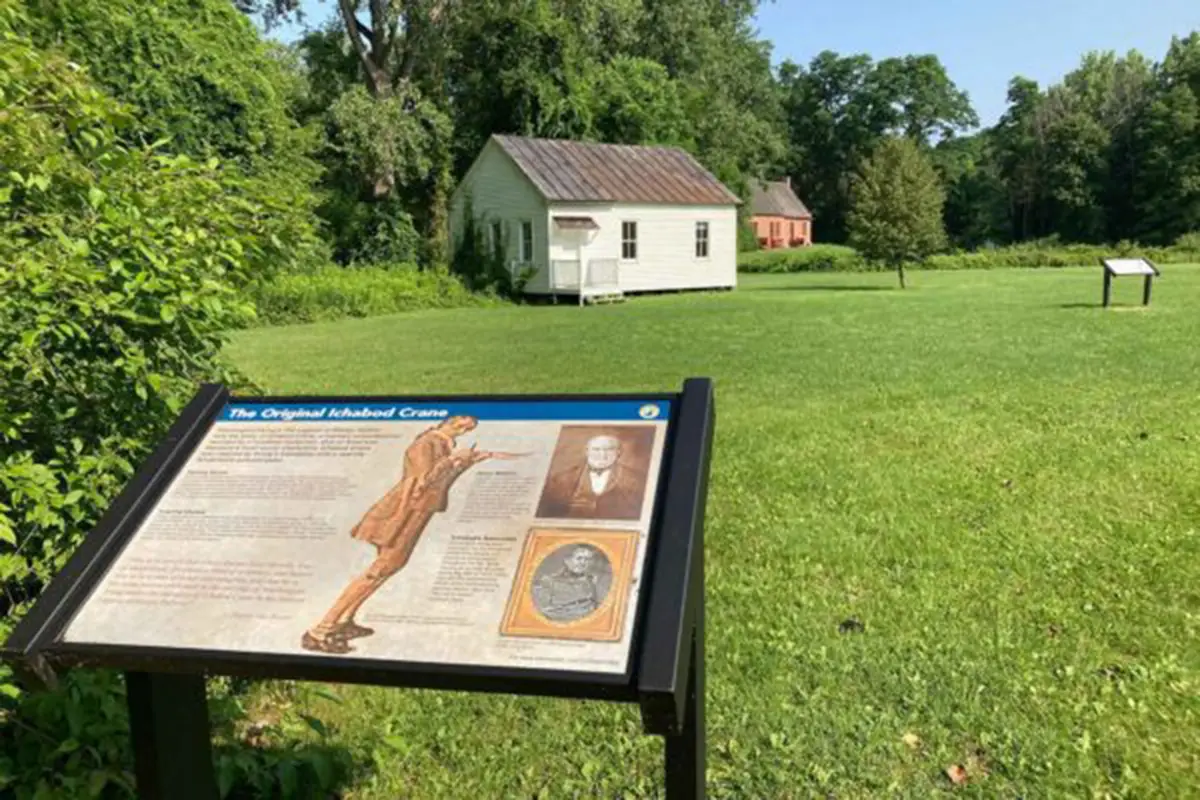 A “Legends & Lore” historic marker, awarded by the New York Folklore Society and William G. Pomeroy Foundation, stands a few yards from the school and commemorates this literary connection. Today, the Ichabod Crane Schoolhouse is a seasonal museum. See exhibitions, period school desks and other objects relating to one-room schoolhouse education in Columbia County.